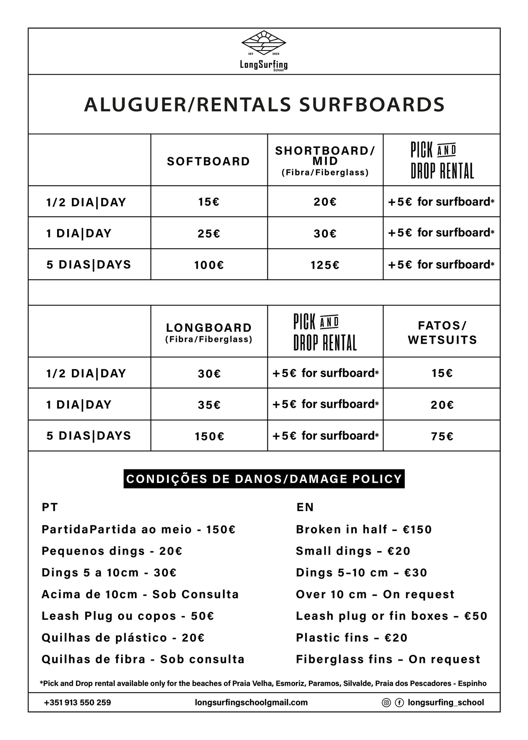 Contact us by email for longsurfingschool@gmail.com, whatsapp (+351 964 620 718), instagram ou facebook.