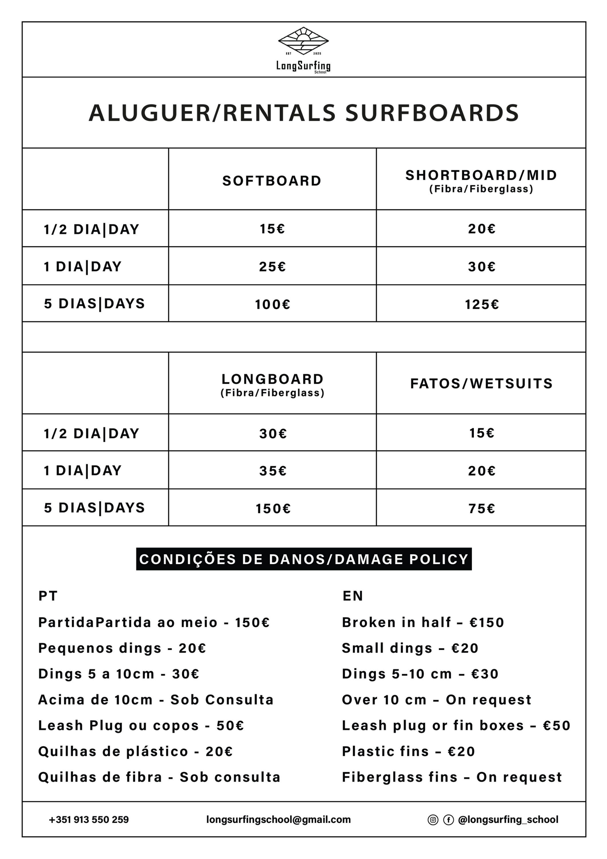 Contacte-nos por e-mail para longsurfingschool@gmail.com, pelo whatsapp (+351 913 550 259), instagram ou facebook.